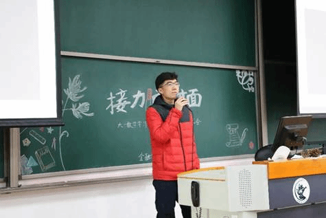 镜头转向英语板块,张一夫同学就四级认识、考试技巧、日常学习及学习方法几个部分讲述了自己的经验与见解。他提到英语的学习不应只局限于备考四级,同学们应该把目光放长远,注重英语水平的提高。在同学提问环节,张一夫同学针对同学们提出的有关精听、写作、阅读等问题给出了实用的回答。