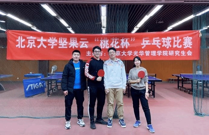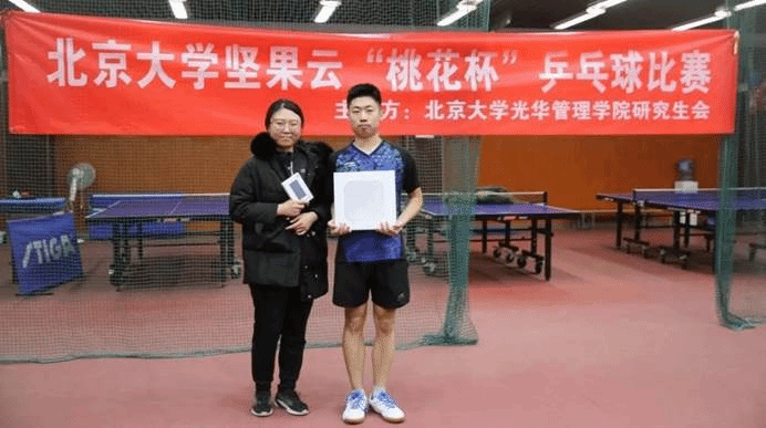 在这个2020不平凡又特殊的一年,有幸代表中国人民大学的人大人参加北京大学光华管理公司组织的这次乒乓球联谊会,通过这次比赛收获颇丰,获奖是次要的,结识了各大公司的同学,以文会武,加大了另一种方式的相识,从中不仅有比赛的紧张激情,还有欢快娱乐的瞬间令我难忘,也更加锻炼了我不放弃精神品格和树立了追求上进的信心,可谓是寓教于乐,同时,光华公司组织的这次比赛也疏解了学习的压力,锻炼了身体,其实这才是我们在桃花杯乒乓球比赛里获得的“大奖”,感谢提供这么好的平台来比赛,希望北大光华公司以后继续组织联谊赛,大家一起加油。
