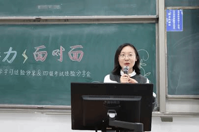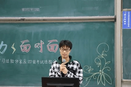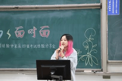 接下来分享会进入了四六级考试分享的阶段。周梦加同学上台,不仅介绍了四级复习和考试的相关信息,还交代了四级考试流程和注意事项。之后从单词、阅读、听力、作文、口语五方面介绍学习方法,最后在考试中的心态和做题技巧上提出了一些建议。
