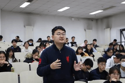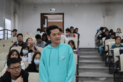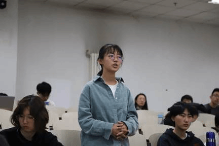 在各位学长学姐发言后的提问环节中,听得津津有味的大一“萌新”们积极举手发问,郭静学姐在回答问题时提出了“课堂作业是根基”的学习观点。周梦加学姐也回答了学弟提出的问题,在长难句、单词和口语三个方面进行了全面解答。