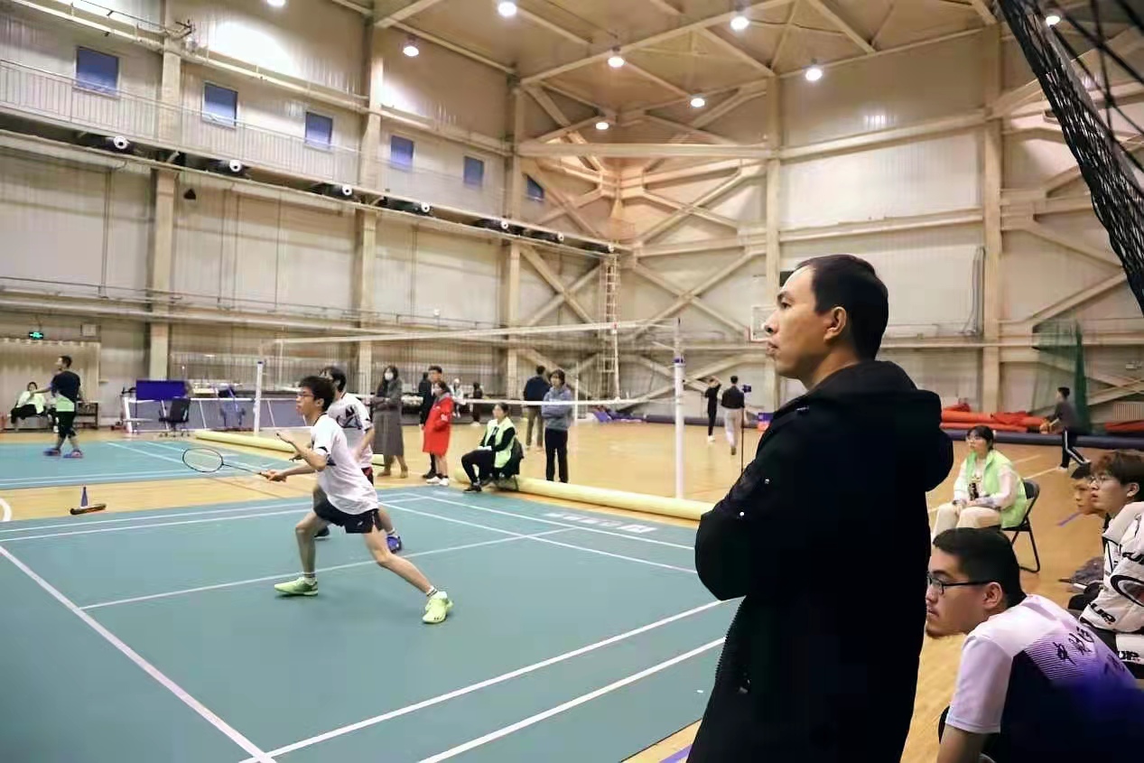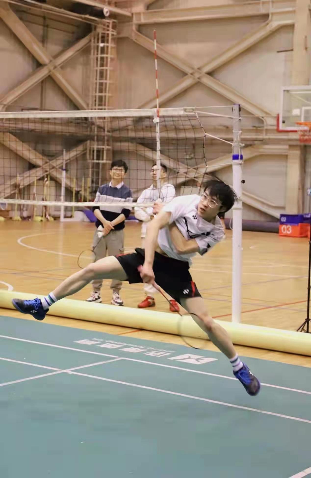 间隔一场比赛,best365足球官网高智宇同学重新出场。他展现了精湛的羽毛球技术,速战速决,以2:0的比分干脆利落地赢得了比赛,极大鼓舞了士气。