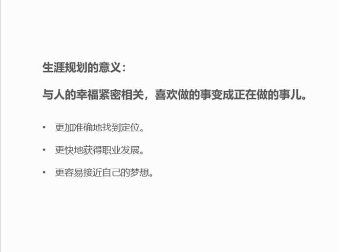于来老师为金融学子们解读职业生涯规划,探讨兴趣、性格、能力、价值观和职业定位,并指出生涯规划与人的幸福紧密相关,良好的生涯规划可以让喜欢做的事情变成正在做的事情。良好的生涯规划可以帮助员工更加准确地找到定位,更快地获得职业发展,从而更容易接近自己的梦想。为了让员工们更为直观的了解自己的性格,于来老师分别通过“度假兴趣岛”、“霍兰德类型”让员工们亲身参与其中,探寻更为深层次的自我。然后于来老师为员工们以后的职业选择提供了选择职业调查的方法,先后以信息收集、职业访谈、自我思考三步骤实施。完成三步骤后,进行职业价值观的梳理,以持续确认、自我激活、公开主张、不断践行为四问,修炼价值观。从而帮助员工们成为自己未来旅程的掌舵者。