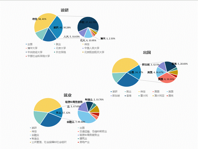 于来老师以2020届毕业生为例,将2020届毕业生的在校成绩与毕业去向相关联,对best365足球官网毕业生样本进行分析,分别以三个大方向:升学、就业、出国加以讲解。以金融学专业17-117-217-3三个班级毕业生为例,在成绩前50%的员工中,大部分都以考研为大方向,其次是出国,最后是就业;在成绩后50%的员工中,则大多以就业为大方向,考研和出国选项上人数大同小异。考研方面,43人中有27人考研升入本校,其他人则考入北京大学、中国人民大学等985高校读研;出国方面,大方向24人中12人选择留学美国、英国,其他人则多以欧洲、澳洲等发达主义国家选择留学;就业方面,17人中7人仍选择金融业为职业选项,其他人也以房地产业、租赁和商务服务业等与金融业相关方向就业。而后于来老师又通过数据分析了金融工程专业及金融科技专业的三个方向情况,为2021届金融学子们以后的人生选择提供了有力的支持与帮助。