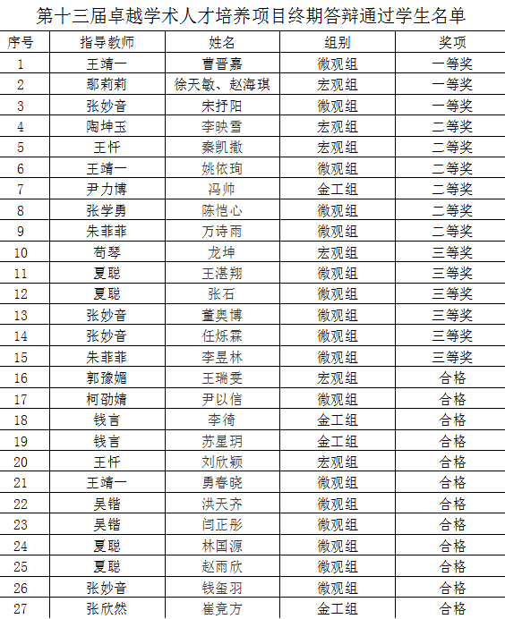 经过综合评审,本次答辩共评选出一等奖3名、二等奖6名、三等奖6名、其余12名全部合格。
