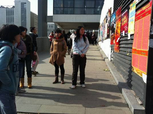 主教、老员工活动中心和宿舍楼下的十八大新闻墙吸引同学们驻足学习