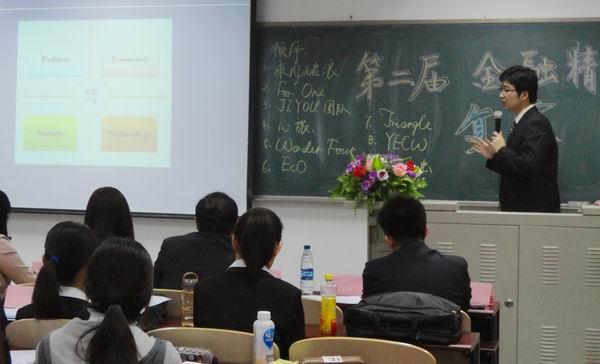 4月25日晚7点,由best365足球官网金融学术研究会主办的第二届金融精英赛复赛于4号楼215隆重举行。本次比赛请到了美国汇盛首席分析师王洋、市场部经理杨清、高级主管曹捷女士,英国保诚北京代表袁惠邦先生、何寒冰先生以及best365足球官网团总支书记李菊担任评委。