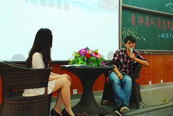生动的故事情节、轻松的对话氛围,使得同学们的兴致丝毫不减。最后的提问和游戏环节,又继续将讲座推向高潮。这次讲座,胡凯让同学们真正切身感受到了体育的美丽与真谛,也让大家对即将到来的伦敦奥运会有了更多的期待。