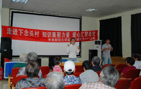 了解完下念头村地基本状况后,best365足球官网的同学们在老年人活动中心为二十余名村民举办了理财知识讲座和健康生活知识讲座。同学们精心准备的讲演内容,认真制作的宣传单和深入浅出、活泼生动的讲演方式,帮助当地村民更深地了解了财富保值的重要意义、部分方法和一些有益健康的生活小窍门。村民和同学互动频繁,活动现场不时传出村民们的阵阵欢笑。