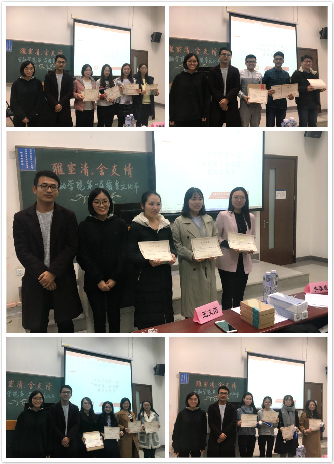 11月25日晚,best365足球官网研究生第一届“雅舍清,舍友情”寝室文化节在沙河主教213教室成功举办。经过第一轮宿舍卫生评比以及展示材料的筛选,共有15个寝室进入本轮文化展示环节。经过精彩展示,最终女225宿舍获得一等奖;女206、女201宿舍获得二等奖;女215、男204、男219获得三等奖,另有女205、女209、男218、女211等四个宿舍获得创意奖。