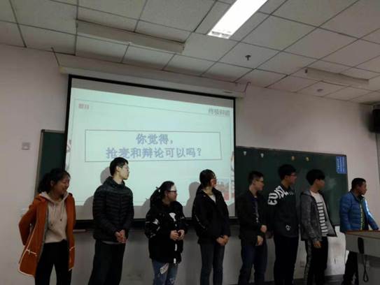 2018级金融学类5团支部更是别出心裁,采用自创的“狼人式辩论”来加深团员们对两会的理解。他们从两会的议事规则入手,以“代表和委员能否抢麦”为题,按照自设规则进行辩论。在辩论过程中,团员们各抒己见、以小见大,在趣味并富有教育意义的活动中,不断加深对两会内涵和形式的理解。