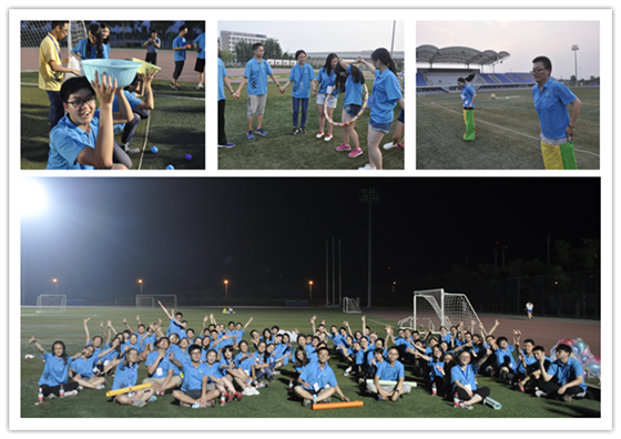 7月10日晚在沙河校区足球场夏令营组织了一场别开生面的趣味运动会。红、橙、金、青、蓝、紫、白七支队伍积极参与,在欢快的旋律中,团队内部通力合作,团队之间激烈竞争,表现出年轻人的朝气、活力与智慧,经过密切合作,红队最终夺冠。比赛结束后,大家合影留念,留下最灿烂的笑容。