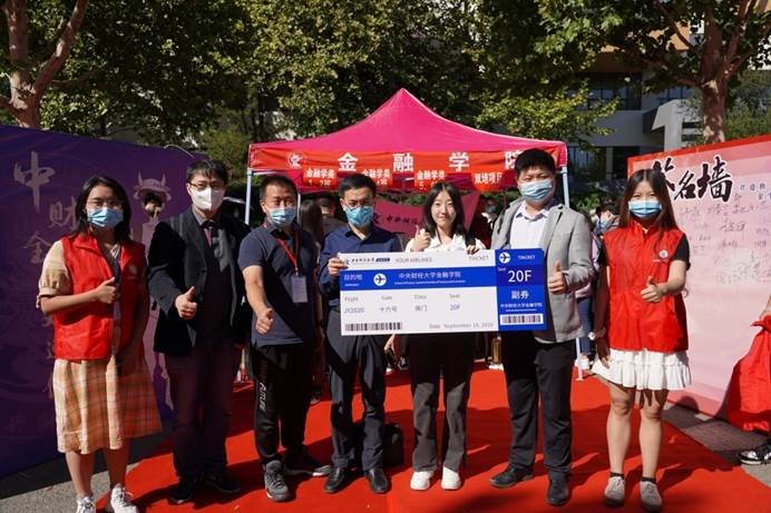 在老师们和志愿者们的带领下,新生们圆满地完成了一系列流程,小萌新们在签名板上签下名字并与金院吉祥物金小融合影留念,以容光焕发的精神面貌开启了人生的新篇章。