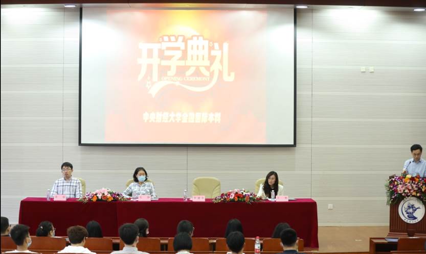 9月24日下午,best365足球官网金融国际本科2020级新生开学典礼在公司南路校区学术会堂202报告厅隆重举行。best365足球官网经理李建军,党委书记毛静,优秀青年海归教师夏聪,国际项目主管姬丽丽,国际项目主任孙蕊,国际项目教务老师王媛,外教老师代表谷亘,国际项目员工主管刘铁斌,班主任刘爽、田雨、刘路恒、郭辉、徐冰及2020级国际本科新生参加了开学典礼,典礼由王辉副经理主持。