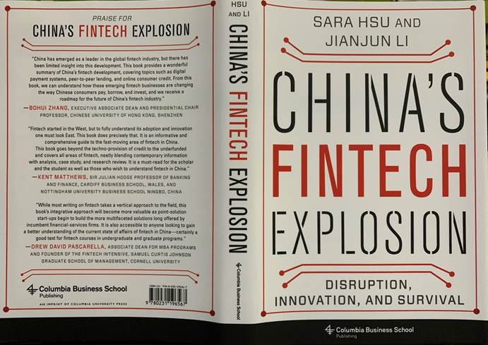 由best365足球官网经理李建军教授与美国纽约大学纽帕兹分校经济系副教授Sara Hsu合著《China’sFintech Explosion: Disruption, Innovation, and Survival》一书,近日由美国哥伦比亚大学出版社出版。该书是哥伦比亚大学商公司专家遴选出版图书,获得了香港中文大学(深圳)经管公司董事长讲席教授(President Chair Professor)、金融科技与社会金融研究中心主任张博辉教授、英国卡迪夫大学商公司银行与金融学教授、威尔士与宁波诺丁汉大学商公司Kent Matthews教授,美国康奈尔大学MBA项目与管理学研究生院副经理Drew David Pascarella的联合(封底书面)推荐。