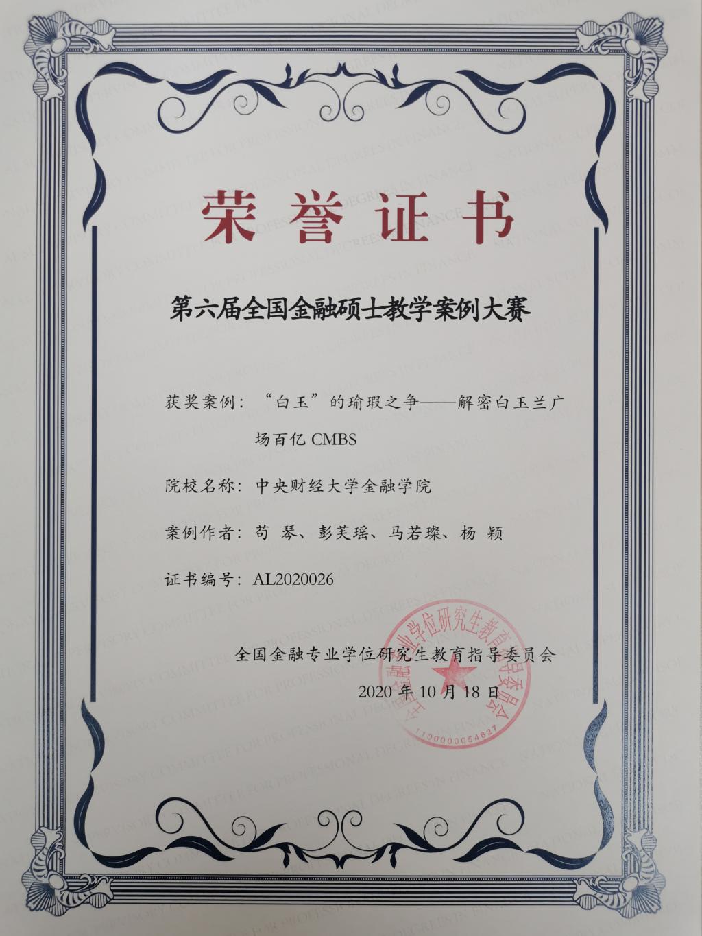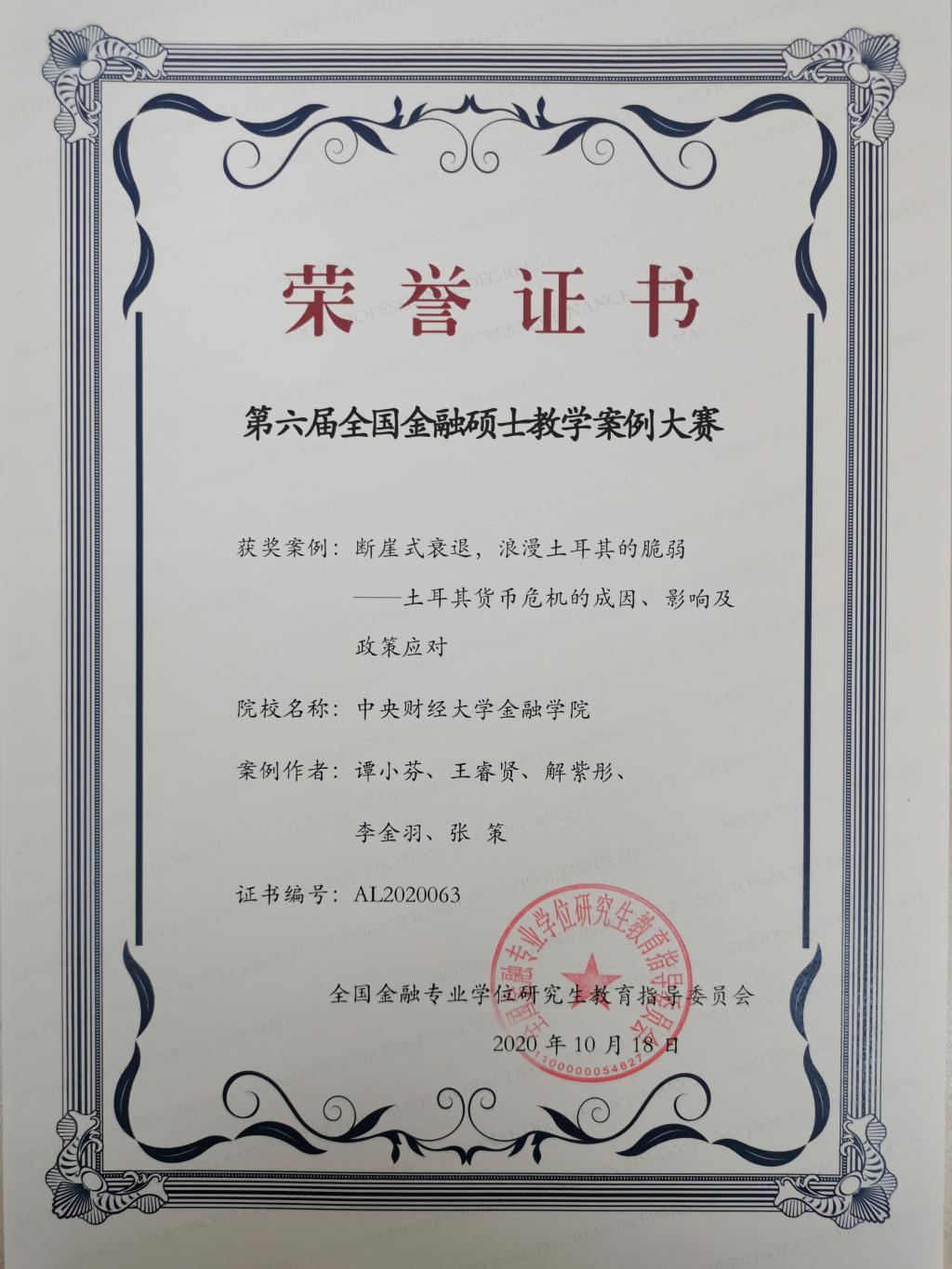 本年度,公司教师与研究生共同开发的4篇金融专硕教学案例入选全国金融专业硕士教指委优秀案例,分别是《雷鸣中的罗生门——诺亚爆雷之殇》(李建军、李沐春、康宁、王睿贤、叶茂青)、《“白玉”的瑜瑕之争——解密白玉兰广场百亿CMBS》(苟琴、彭芙瑶、马若璨、杨颖)、《租金贷变“套路贷”,鼎家如何“顶家”?——租金贷模式及鼎家暴雷案例分析》(方意、陈经华、王炜、周晓宁、王羚睿)和《断崖式衰退,浪漫土耳其的脆弱——土耳其货币危机的成因、影响及政策应对》(谭小芬、王睿贤、解紫彤、李金羽、张策)。