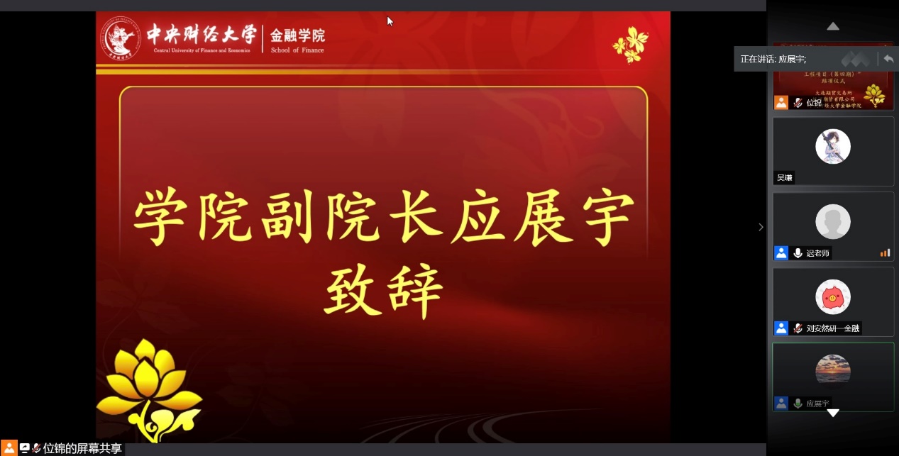 2020年12月28日晚,公司与大连期货交易所、银河期货有限公司共同主办的“高校期货人才培育工程项目(第四期)”结项仪式通过线上腾讯会议圆满完成。公司副经理应展宇教授、银河期货有限公司培训部总监迟焕霞女士和高校期货人才培育工程项目(第四期)学员们出席了此次结项仪式。本次活动由公司研究生教学科研办公室老师位锦主持。
