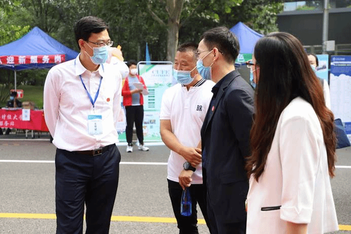 上午10时,校领导一行来到best365足球官网迎新点,看望迎新工作人员和报到新生,仔细询问新生行李运输情况,详细了解公司迎新工作和疫情防控工作落实情况,亲切问候了负责迎新工作的志愿同学们,同时也表达了对新同学们的欢迎。