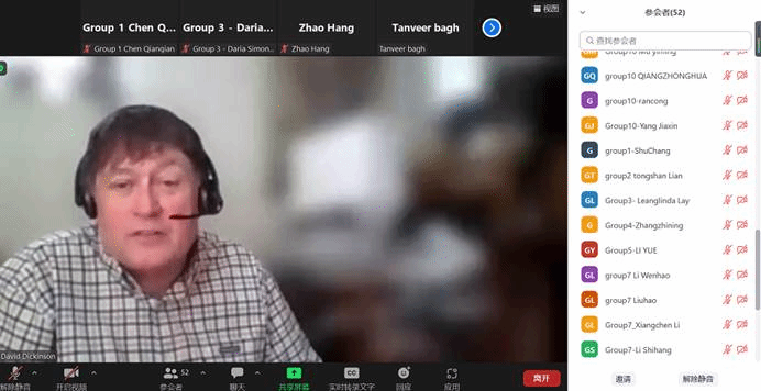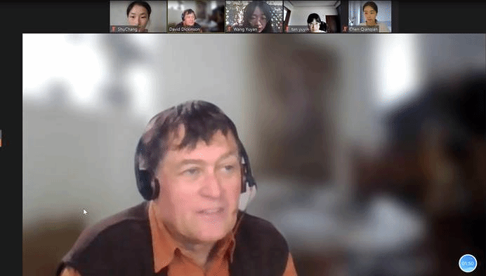 在课程视频之外,Dickinson教授每节课预留了四十五分钟互动时间,以视频会议的方式对当次课程内容加以总结梳理,并为同学们答疑解惑,巩固学习成果之余也极大的调动了同学们参与课堂沟通交流的积极性和主动性。