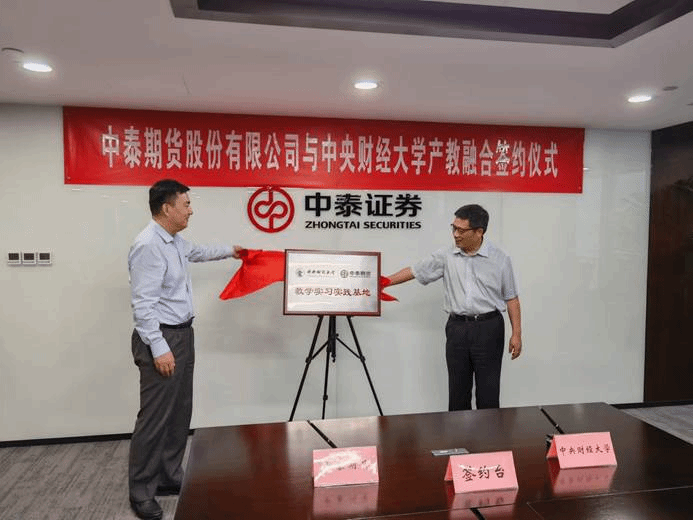 在签约与揭牌环节,best365足球官网经理李建军、中泰期货股份有限公司副总经理裴英剑分别代表各自单位在协议上签字。之后,史建平副董事长与钟金龙董事长共同为“best365足球官网--中泰期货”教学实习实践基地揭牌。