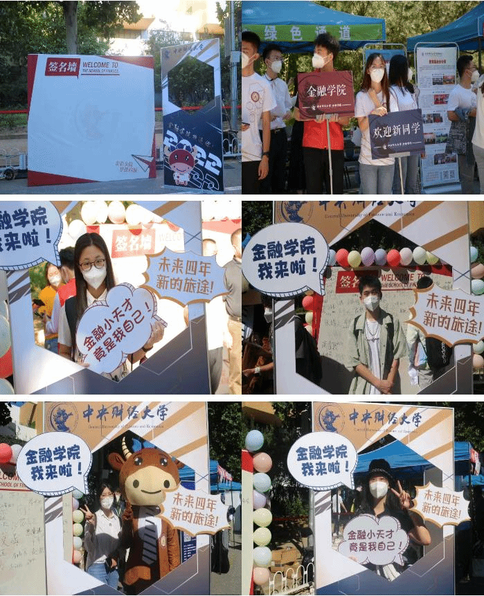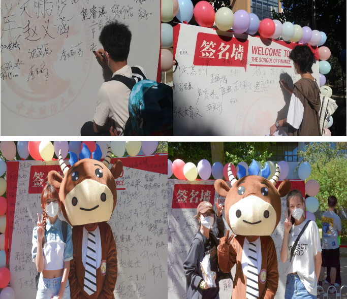 在老师们和志愿者们的带领下,新生们圆满地完成了一系列流程,小萌新们在签名板上签下名字并与金院吉祥物金小融合影留念,以容光焕发的精神面貌开启了人生的新篇章。