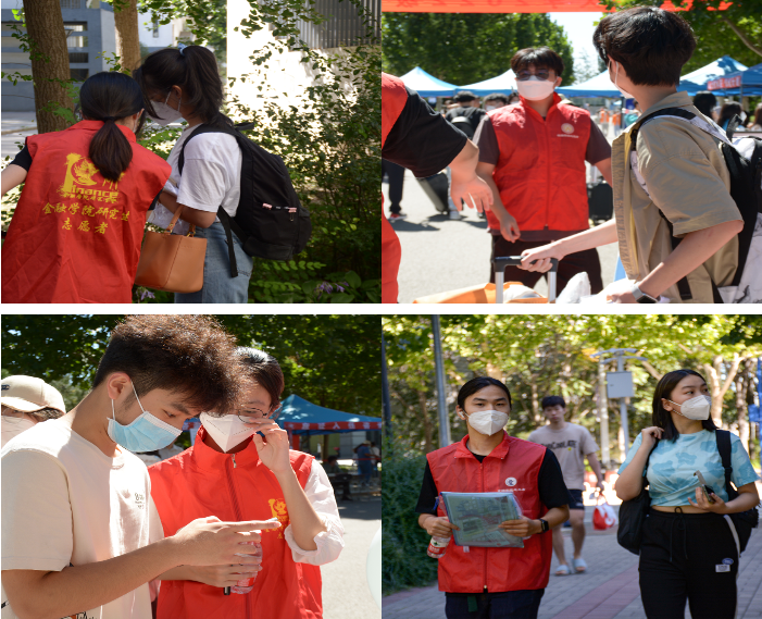 新生在完成报到手续之后,由公司事先招募的志愿者接过行李箱,引领同学前往宿舍,并帮助员工将行李搬运至宿舍楼上。尽管天气炎热,志愿者们已经汗流浃背,脸上却依旧挂着满足而温暖的笑容,时刻准备帮助下一位有需要的同学。