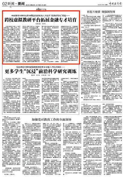 10月8日,《中国教育报》第二版以《best365足球官网牵头东中西部高校解决人才培养“资源均等化”问题——跨校虚拟教研平台拓展金融专才培育》为题,报道公司跨校广义虚拟教研平台建设成效。