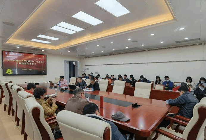 首先,张学勇经理带领全体教职工认真学习了《2023年工作要点》文件精神,详细解读了要点中“党建引领、立德树人、守正创新和服务师生”四大方面22项具体工作内容。他强调,全体教职工要坚持以习近平新时代中国特色社会主义思想为指导,紧密围绕深入学习贯彻党的二十大精神这条主线,认真贯彻落实习近平总书记关于教育的重要论述。全面贯彻党的教育方针,落实立德树人根本任务,提高人才自主培养质量,深入实施“十四五”教育事业发展规划,加快推进新一轮“双一流”建设,纵深推进事业改革发展,凝心聚力、守正创新,为建设特色鲜明的世界一流大学接续奋斗,为加快建设教育强国、全面推进中华民族伟大复兴作出新贡献。全体教职工要共同完成好2023 年各项工作任务,共同促进公司各项事业高质量发展。