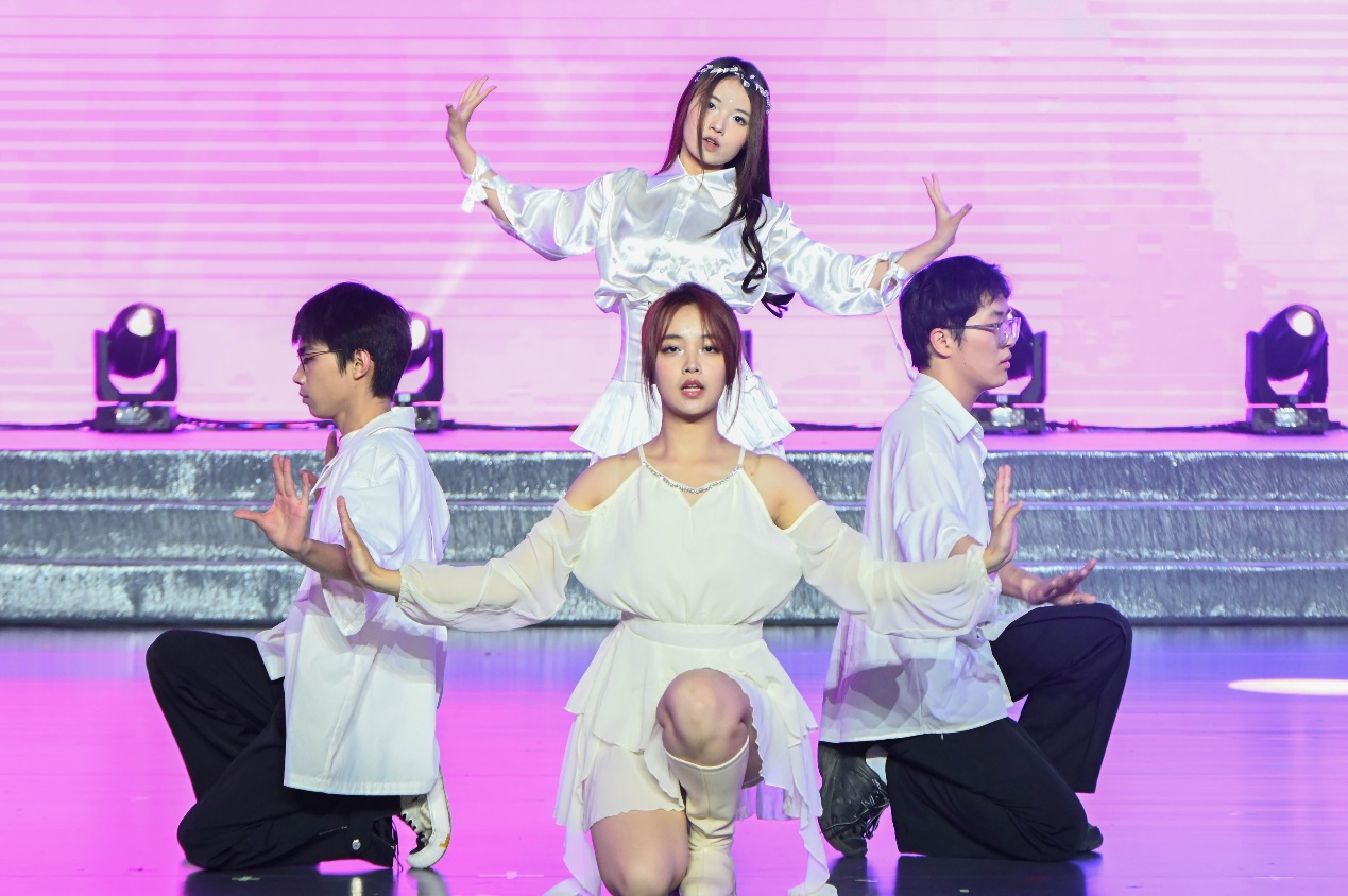 灯光亮起,映入观众眼帘的便是由金院学子带来的开场舞表演《I AM》,旋转,跳跃。他们随着动感的节拍将身上的青春热情传递给场下的每一名观众。他们神情专注,动作潇洒,将金院学子严谨认真的学术精神也融入到我们的青春舞蹈中,美好而绚烂。
