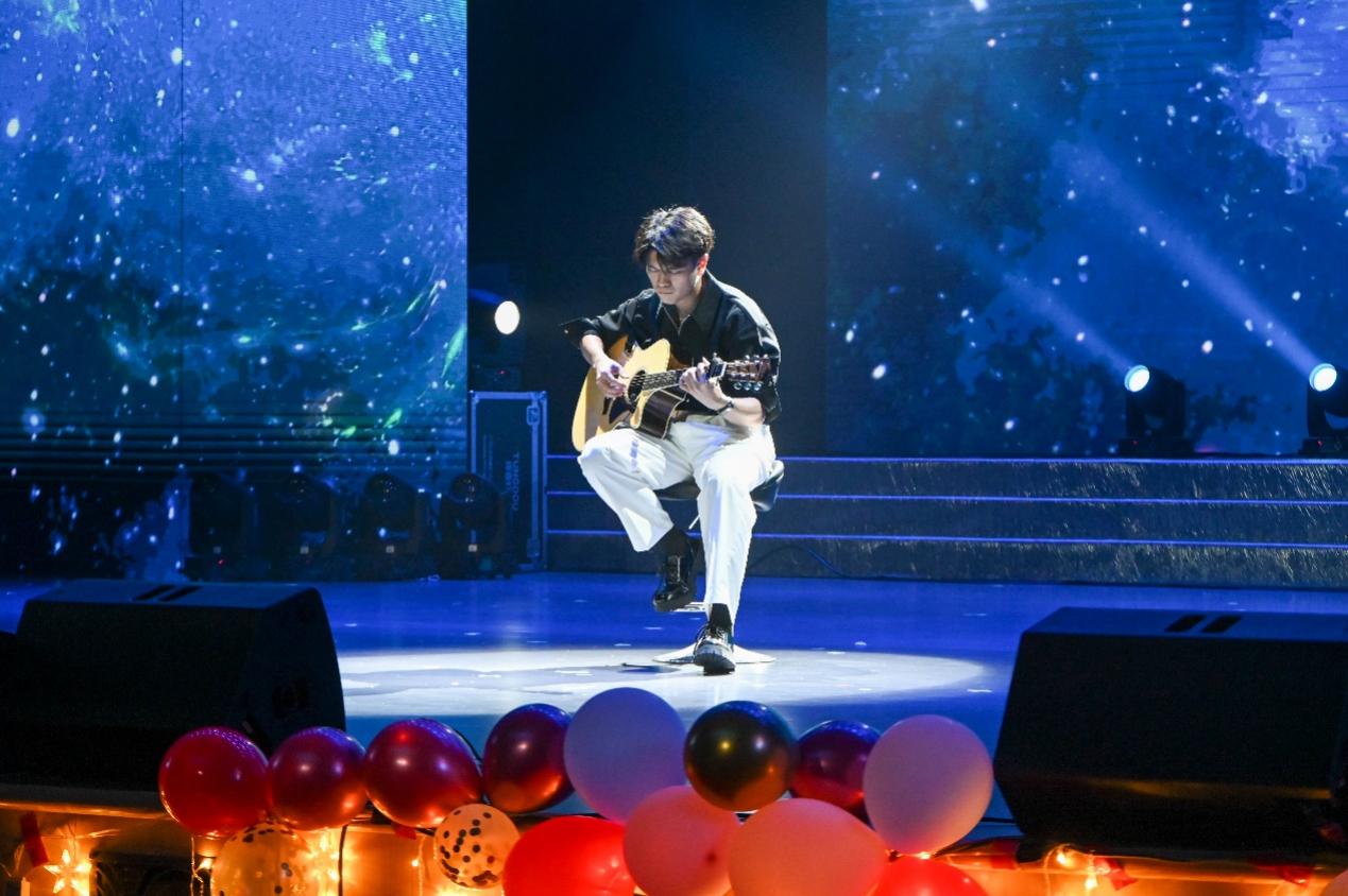师生之谊,融化于老师与员工间的相处的点点滴滴中,员工对老师的赞颂将融于音乐中送给老师们。杨欣同学带来吉他独奏《like a star》,动人的琴声,抑扬顿挫,悠扬悦耳,表达着对师生谊的赞颂。