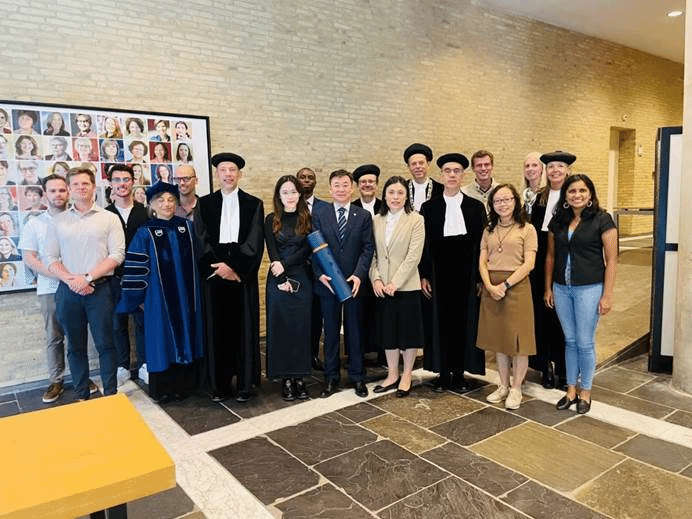 2023年9月18日,中财-蒂尔堡项目博士生学位论文公开答辩仪式在蒂尔堡大学Portrettenzaal 礼堂举行。公司蒂尔堡项目2017级博士生苏自力现场进行了公开答辩,答辩仪式由蒂尔堡大学经济与管理公司的Stephan Hollander教授主持,其导师荷兰蒂尔堡大学Philip Joos教授、 英国克兰菲尔德大学Constantinos Alexiou教授、英国杜伦大学顾弦副教授,以及博士委员会成员塞浦路斯大学Irene Karamanou教授、克兰菲尔德大学Matt Nnadi副教授和蒂尔堡大学Fabio Braggion教授参加了答辩仪式。
