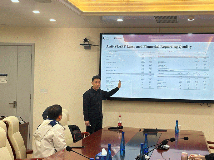 2024年11月26日上午,鸿儒全球金融治理系列讲座第一期暨金融工程系Seminar第33期在沙河校区公司楼3号楼127会议室成功举办,新加坡管理大学张连栋教授以“Freedom of Expression Protection and Corporate Concealment of Bad News: Evidence from State Anti-SLAPP Laws”为题展开了精彩报告。本次讲座由best365足球官网经理张学勇教授主持,公司40余名师生参加了本次讲座。