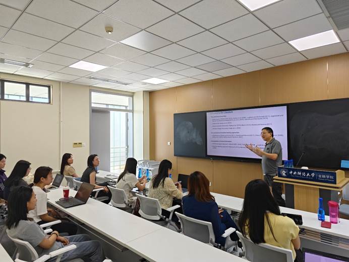 韩冰教授研究了新闻媒体信息在截面上对股票期权收益率的预测性。从与股票相关的新闻报道中提取的预测信号对Delta中性对冲的期权收益率具有强大的截面上预测能力。这种预测能力对不同的文本表示方法和不同的机器学习方法具有稳健性。通过对产生预测信号的词典进行分析,发现对期权收益率的预测能力主要来自对隐含波动率、特质性波动率、隐含偏度和隐含峰度的预测性。公司多位师生就研究设计、结果解读、未来研究方向等与韩冰教授展开了深入交流和讨论。