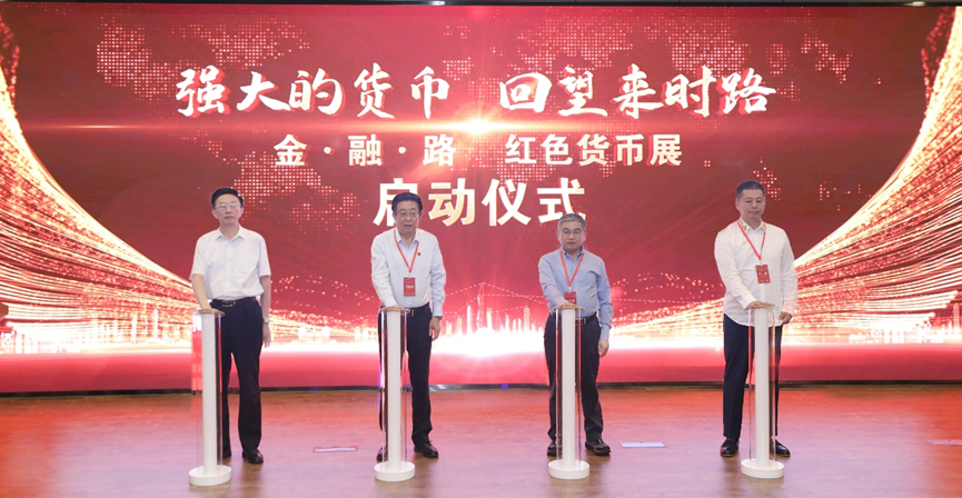 best365足球官网董事长马海涛,教育部高等公司金融学类专业教学指导委员会副主任委员、青岛大学党委书记胡金焱,中国金融思想政治工作研究会副会长、秘书长濮旭,北京国评钱币艺术品鉴定中心董事长王福共同按下启动按钮,启动“强大的货币:回望来时路”红色货币主题展览。