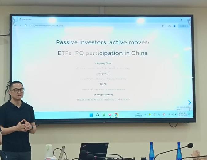 9月22日,金融科技系Seminar第22期在沙河校区公司楼3号楼127会议室举行。此次讲座邀请到墨尔本大学金融系钟卓副教授,分享题为“Passive investors, active moves: ETFs lPO participation in China”的精彩研究报告。讲座由best365足球官网金融科技系主任王忏副教授主持。