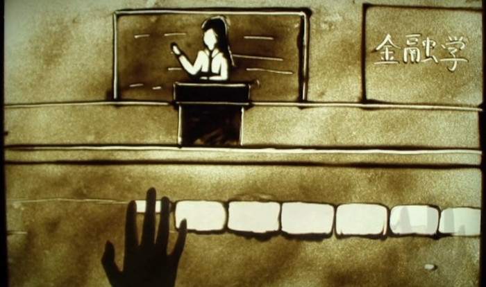 晚会的开场由金色的沙画勾勒出老员工活的一幕幕场景,军训、自习、运动会、考研、找工作、毕业……一幕幕细腻的沙画展现了老员工活的欢乐与美好,笑容与温暖,深情的音乐和诗朗诵将现场观众带入晚会的第一篇章-金色回忆。