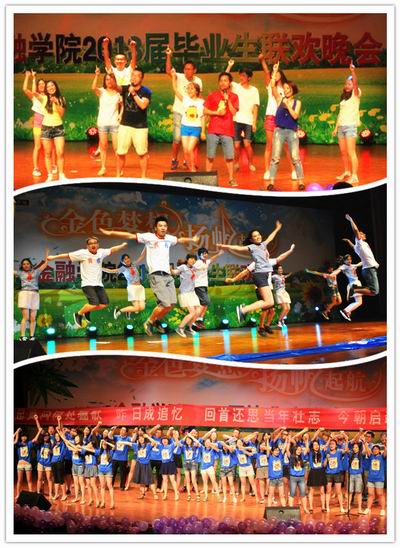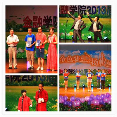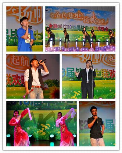 高低年级深度互动,晚会节目精彩纷呈。2009级金融工程1班的歌舞表演《青春纪念册》拉开晚会帷幕,四支歌舞演绎大一到大四四年成长的关键词,歌颂友情和爱情、奋斗和梦想;由本科生和研究生带来的相声《学武功》和《论中财》用幽默生动的语言回忆了学习生活的点点滴滴;2010级金融工程研究生用情景舞蹈《校园变奏曲》艺术地再现了研究生的学习、求职历程和毕业喜悦之情;由四届校园十佳歌手和楼道歌手带来的歌曲串烧《海阔天空》、《Can You Feel the Love Tonight》、《See You Again》和《北京北京》用最动听的旋律唱出对校园生活的眷顾和对毕业生的祝福;沙河校区本科生带来舞蹈《Not Myself Tonight》和《惊鸿舞》,研究生会的诗朗诵《假如我研三》,2010级本科生精心制作的视频《毕业快乐,see you!》道出对学长学姐的依依惜别之情;视频《金院足球,我骄傲》回顾了2013年中财杯足球赛中公司足球队的卓越表现,表达了员工们对公司强烈的自豪感和归属感。