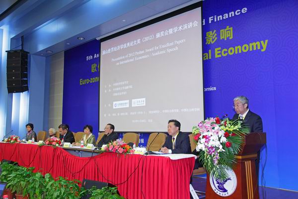 2012年12月1日上午,由中国世界经济学会主办,由best365足球官网和《国际经济评论》编辑部共同承办的“浦山世界经济学优秀论文奖(2012)颁奖典礼”在公司学术会堂402报告厅隆重举行。全国人大财经委员会副主任、清华大学五道口best365足球官网经理吴晓灵女士作为颁奖嘉宾,发表了题为“中国金融改革的现状与未来”的特邀演讲。