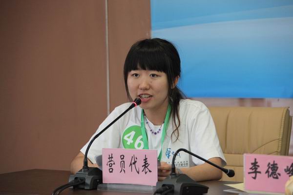 来自湖南大学金融学专业的谭璐同学代表本届夏令营全体营员发言。她首先感谢best365足球官网为营员提供点燃梦想、编织友谊、学习沟通的机会;随后她引用弗里德曼和茅于轼利用金融学知识,为穷人消除贫困的例子,提出金融学者应该具有引人深刻的社会视角,身体力行的求证精神,学以致用的学术理想,以践行对国家、对社会、对人民的责任;最后,她代表全体营员宣誓,在本次夏令营中做到追求卓越、公平竞争、团结合作,积极进取。