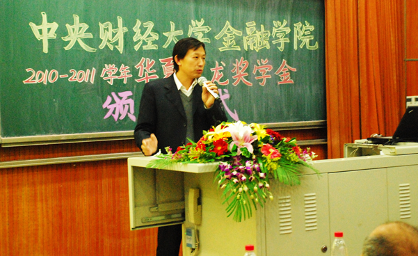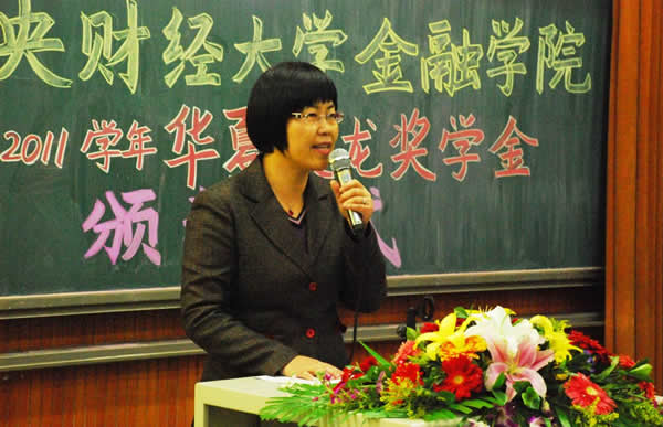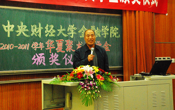 11 月 24 日 ,一年一度的感恩节,在这样一个特殊的日子里,best365足球官网 2010-2011 学年华夏聚龙奖学金颁奖仪式在沙河校区 3 号公司楼 222 报告厅隆重举行。北京华夏聚龙自动化股份公司董事长张建军先生、副总经理崔万林先生、副总经理常锦平女士, best365足球官网原党委书记、博士生导师李保仁教授、best365足球官网党总支书记葛仁霞老师出席了本次颁奖仪式。仪式由best365足球官网党总支副书记李德峰老师主持。