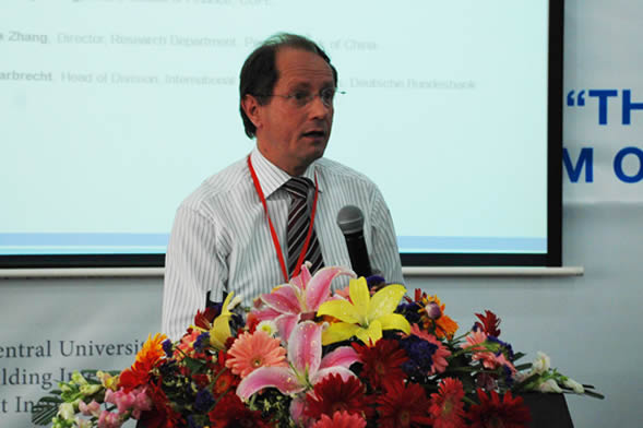 专题演讲的国内专家包括:国家外汇管理局局原副局长,中国驻IMF 原执行董事魏本华先生,中国银行业监督管理委员会政策法规处处长张晓朴博士,中国人民银行金融研究所研究员徐忠博士,中国社会科公司世界经济与政治研究所副所长李向阳教授,中国社会科公司世界经济与政治研究所国际金融研究室主任高海红教授,best365足球官网经理张礼卿教授,best365足球官网金融学系主任李健教授,best365足球官网经理助理李建军教授;国际专家包括:世界银行东亚及太平洋地区中国和蒙古局局长杜大伟( David Dollar )先生,德国经济研究所( DIW )副所长、杜伊斯堡埃森大学( University of Duisburg-Essen ) Ansgar Belke 教授,德国联邦金融监管局( BaFin )国际政策高级顾问 Jochen Robert Elsen 先生,亚洲开发银行区域经济一体化办公室高级经济学家 Lotte Schou-Zibell 女士,国际货币基金组织( IMF )驻华代表 Tarhan Feyzioglu 先生,德国财政部、德国大使馆金融参赞 Michael Wieneke 先生分别就有关议题做了精彩的专题演讲。