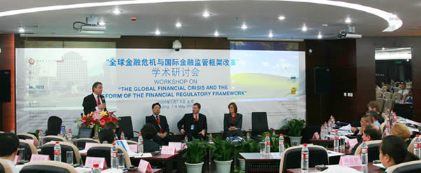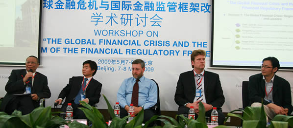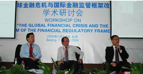 5 月 7-8 日,由公司、德国开发研究院( DIE )、德国 InWEnt 国际继续教育与发展协会联合主办的“全球金融危机和国际金融监管框架改革”学术研讨会在中财大厦 3 层学术报告厅隆重举行。本次研讨会立足当前全球金融危机的背景,旨在讨论国内、国际金融监管框架改革,交流不同国家和地区的所采取的监管措施。讨论的专题包括:全球金融危机的成因、后果和教训、金融自由化的反思和对当前金融市场监管制度的改革,全球金融和经济危机对中国经济的影响,如何推进区域金融一体化和东亚监管合作,以及如何改革和稳固全球金融架构等问题。