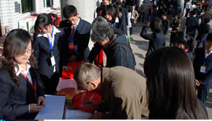 早晨 8:00 ,员工们陆续返校,公司签到台前欢声笑语一片,签到、领取材料、佩戴校徽,气氛热烈而有序,多年未见的同学、师生纷纷相拥,共叙同学谊、师生情。据不完全统计,公司此次返校参加校庆活动的员工约有九百余人。
