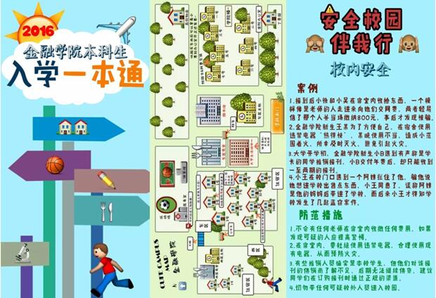 特色《入学一本通》,安全教育第一:《新生一本通》是best365足球官网每年迎新的特色小册子,内含有公司领导、老师、班主任等通讯录,金融员工专属的手绘地图、入学教育周活动安排表,以及十余个安全案例,从校内安全、电话诈骗、交通安全、网络安全、运动安全五个方面进行了生动的安全第一课。