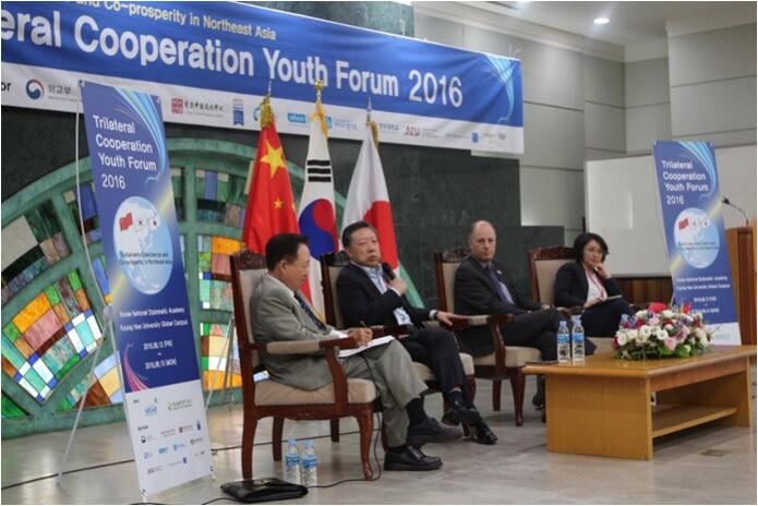 在论坛期间,张礼卿教授参加了题为“东北亚的未来”的圆桌会议,与来自联合国对外拓展部的Maher Nasser部长、日本神田大学的知名国际问题专家YasuyoSakata教授,以及韩国前驻日本大使等进行了交流。张教授认为,中日韩三国的人民不应忘记历史,但更应该面向未来,三国之间不断加深经济和金融合作,对于亚洲乃至世界的繁荣与和平都是极为重要的。为此,各国之间加强政治互信非常重要。在加强地区合作的同时,各国也应该加强多边主义国际合作。张教授强调,青年是世界的未来,希望中日韩的青年人能够通过各种渠道不同增进相互了解和信任,广泛发展友谊,不断加强交流和合作。