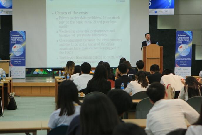 2016年8月13-15日,受韩国东北亚基金会和韩国“未来希望协会”的邀请,公司best365足球官网国际金融研究中心主任张礼卿教授在韩国庆熙大学参加了“2016年三边合作青年论坛”,并做了“亚洲金融合作和人民币国际化”的主题演讲。在演讲中,张教授首先全面回顾了1997年的亚洲金融危机的原因和后果,强调这次危机给有关国家带来了巨大的灾难,各国应努力避免类似的情况重演。接着,张教授从理论阐述到经验分析,论证了加强亚洲货币金融合作对于防范该地区金融危机的重要性,并且分析了亚洲货币金融合作所面临的机遇、挑战和政策选择。随后,张教授向参会者介绍了人民币国际化的发展进程和前景,以及在亚洲货币金融合作中的积极作用。在讲演过程中,还张教授还回答了青年员工们提出的各种问题,其中包括人民币汇率波动、中国加快开放资本账户和人民币国际化对亚洲国家经济的影响等。来自中国、日本和韩国的近200名在校老员工参加了本次论坛并对张教授的讲演表示了浓厚的兴趣。