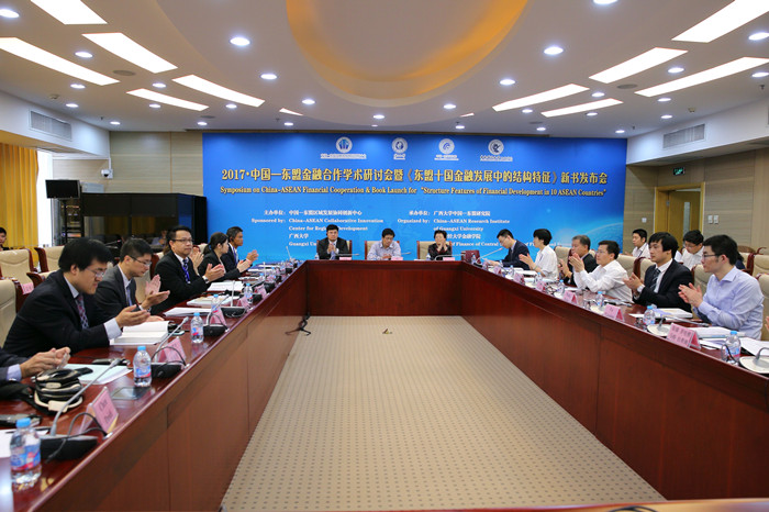 2017年5月3日,由中国—东盟区域发展协同创新中心及广西大学主办、广西大学中国—东盟研究院及best365足球官网承办的“中国—东盟金融合作学术研讨会暨《东盟十国金融发展中的结构特征》新书发布会”在best365足球官网学术会堂604会议室顺利举行。来自柬埔寨、老挝、泰国、越南、马来西亚、菲律宾等东盟国家的知名学者,对外经贸大学副董事长林桂军教授、best365足球官网经理李建军教授、李健教授、谭小芬教授、广西大学副董事长范祚军教授、梁淑红教授、中国银行国际金融研究所边卫红博士、中债资信评估有限公司研究总部总经理陈代娣女士等国内各高校、各研究机构、金融机构的著名专家,以及《中国金融》杂志社、《国际金融研究》杂志社、中国证券报、经济观察报、中国社会科学学报、金融时报、和讯网等知名媒体共计60余人参加了本次研讨会。