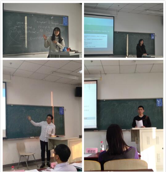 答辩会分为PPT报告与评委老师提问两个环节。依据研究兴趣和方向划分的三组同学分别结合经济、金融热点领域和前沿问题从选题过程、文献研究、模型构建、数据处理、研究进度等方面汇报了研究成果并提出下一阶段的研究计划和努力方向。