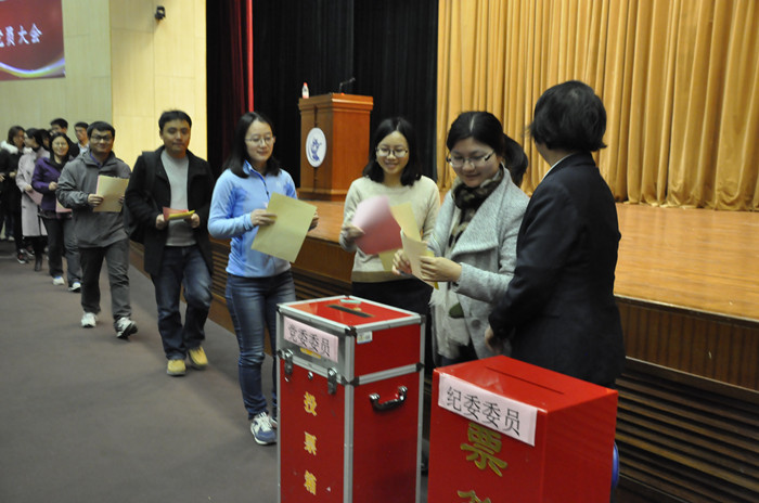 大会第二项内容进行best365足球官网新一届党委委员和纪委委员选举。大会审议并举手表决通过了《best365足球官网best365足球官网党员大会选举办法》、新一届党委委员候选人名单、纪委委员候选人名单、监票人及总监票人名单,并宣布计票人名单。在总监票人和监票人监督下,与会正式党员以无记名投票方式,选举王辉、李建军、李俊峰、张晓红、黄昌利、葛仁霞、谭小芬七名同志为best365足球官网新一届党委委员,选举王辉、王汀汀、罗卓笔三名同志为best365足球官网纪委委员。