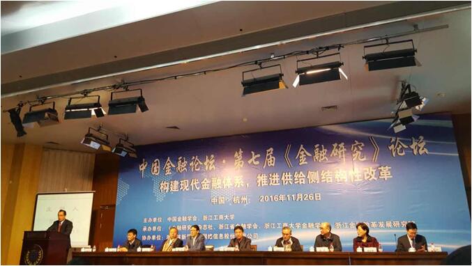 2016年11月26日,2016中国金融论坛暨第七届《金融研究》论坛在杭州浙江工商大学举行。本次论坛的主题为“构建现代金融体系,推进供给侧结构性改革”,论坛主办方为中国金融学会和浙江工商大学,承办方为《金融研究》杂志社、浙江省金融学会、浙江工商大学best365足球官网和浙江金融改革发展研究院。近100位来自清华大学、复旦大学、best365足球官网等知名高校的专家学者出席了本次会议。