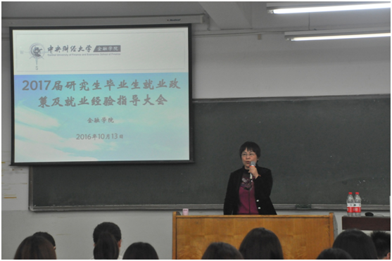 10月13日下午15时,公司2017届研究生就业动员大会在公司南路主教103举行。公司党委书记葛仁霞老师、就业指导中心薛雪老师、公司研究生工作办公室罗卓笔、庞加欣老师以及公司2017届毕业生180余名同学出席了大会。